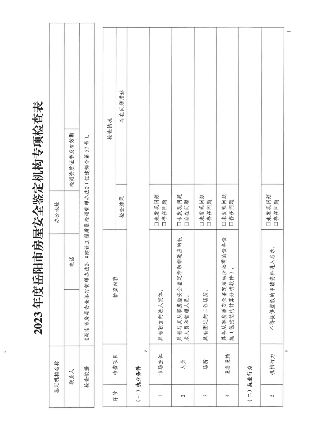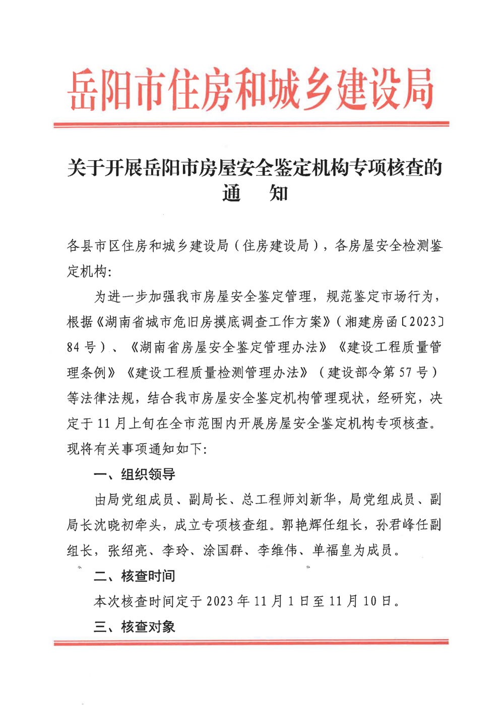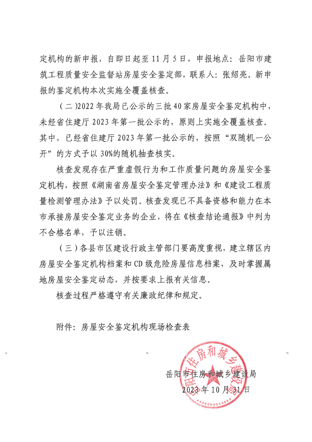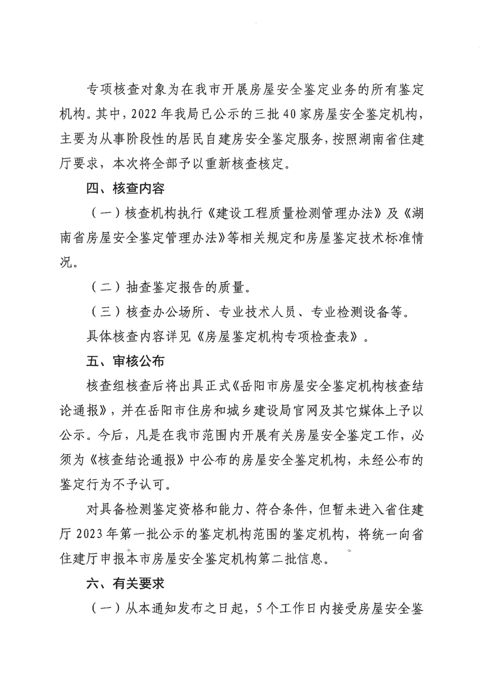 关于开展岳阳市房屋安全鉴定机构专项核查的通知