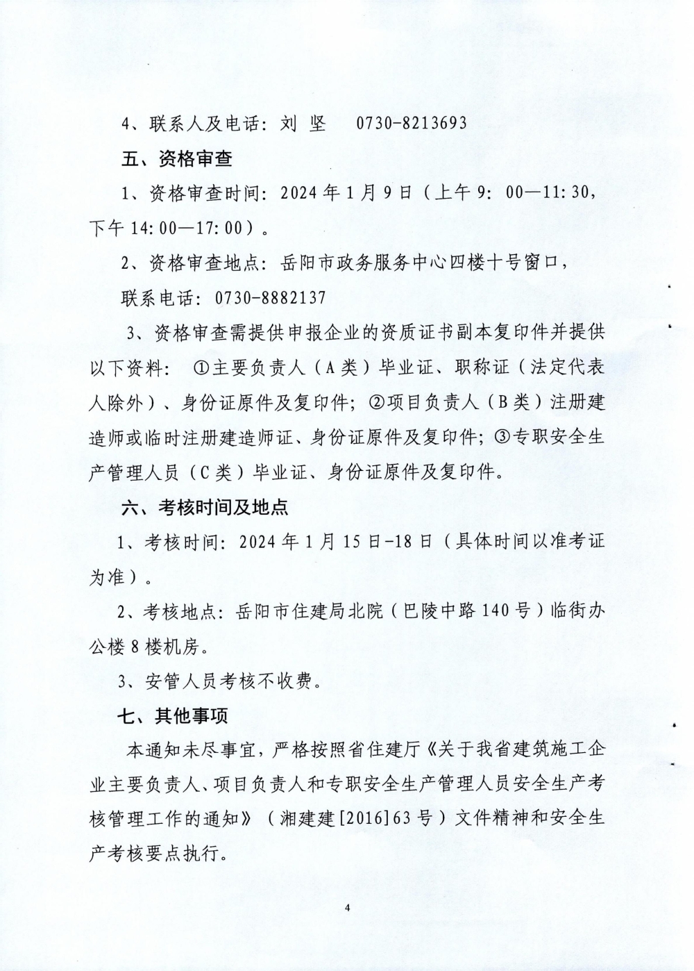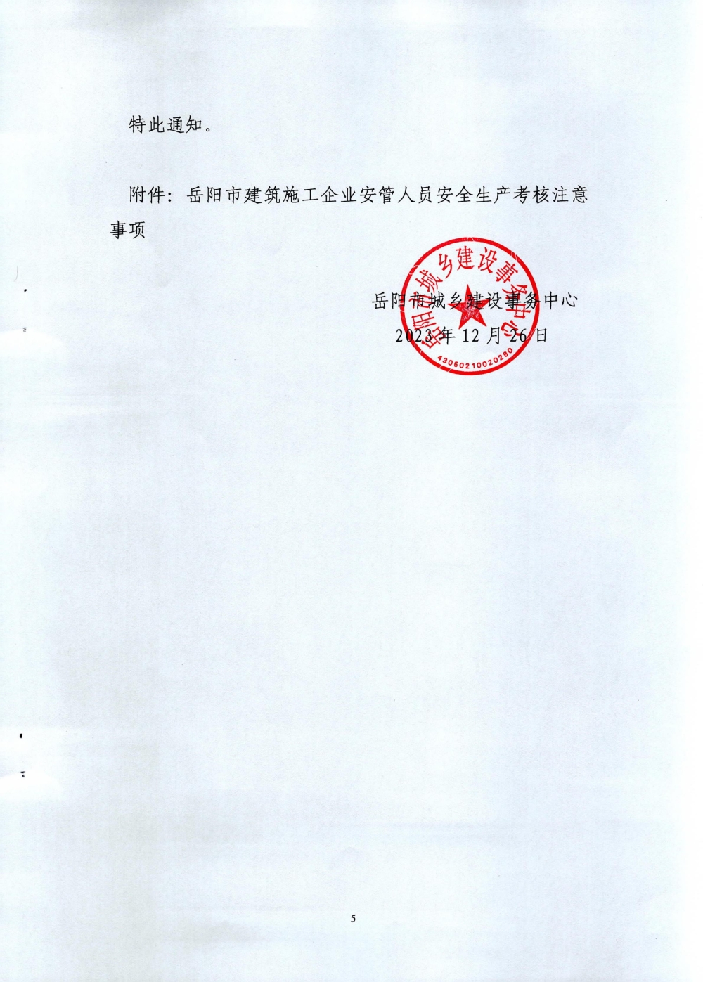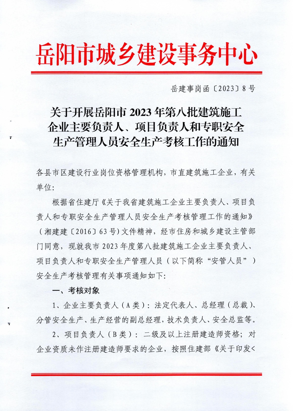 关于开展岳阳市2023年第八批建筑施工企业主要负责人、项目负责人和专职安全生产管理人员安全生产考核工作的通知