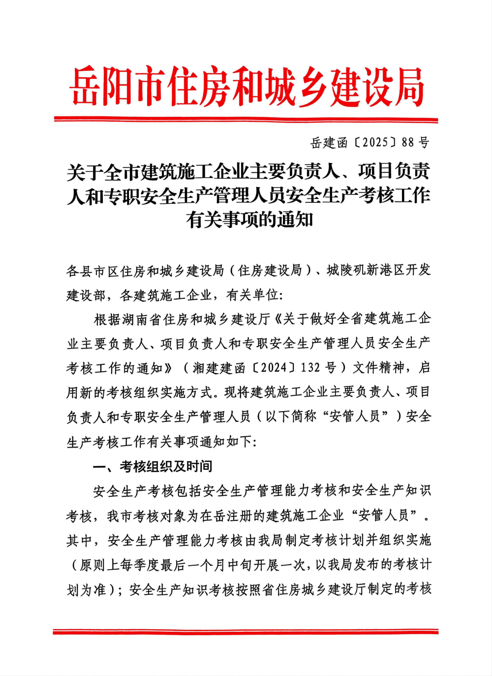 关于全市建筑施工企业主要负责人、项目负责人和专职安全生产管理人员安全生产考核工作有关事项的通知