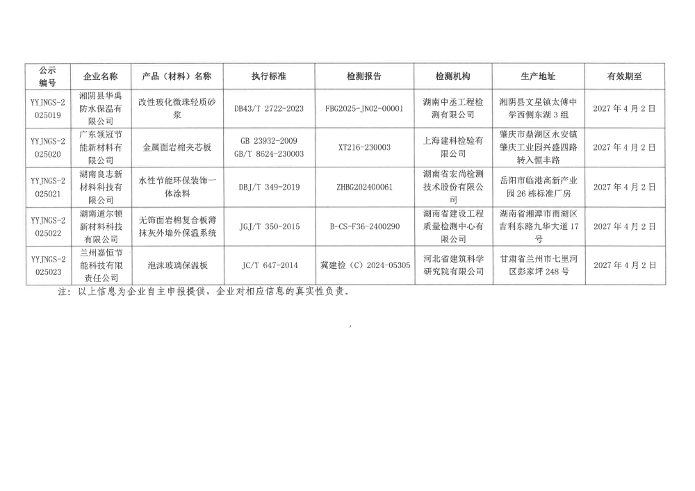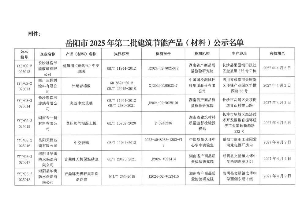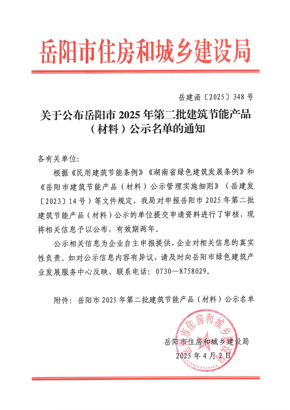 关于公布岳阳市2025年第二批建筑节能产品(材料)公示名单的通知
