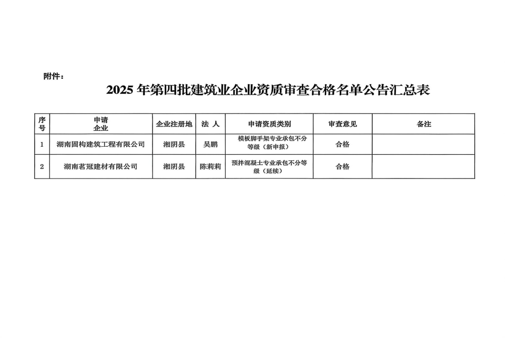 关于2025年度第四批建筑业企业资质审查合格名单公告