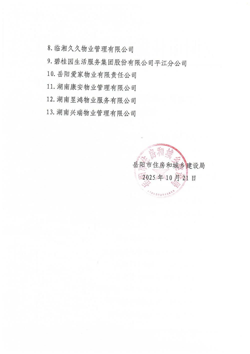 关于更新岳阳市物业服务人应急储备库企业名单的通知