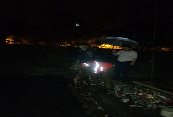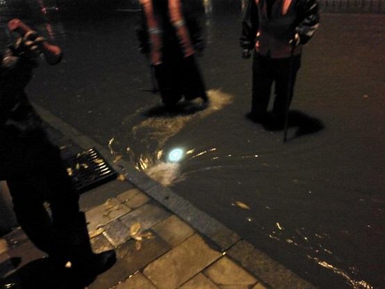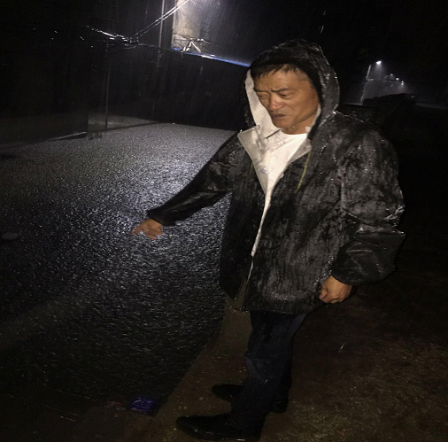 五一劳动节当晚,市政维护管理处副主任鲍晓陆同志现场指挥防汛排渍