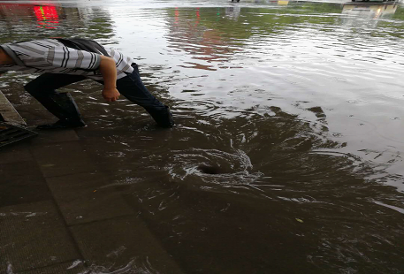 五一劳动节,青年中路老教育局积水点排渍