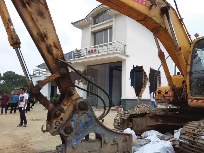 即便如此,这伙人不仅没有停下来,反而加快了拆毁速度。10多分钟后,警察赶到前,除了挖掘机师傅,其他人员全部逃离了现场。但此时的垃圾站早已面目全非。