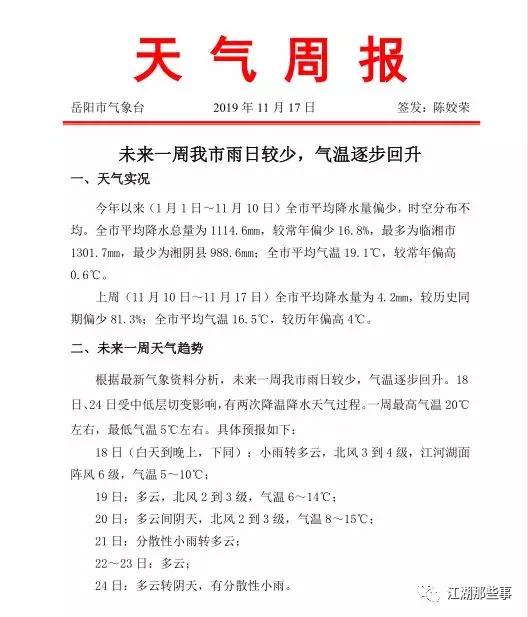 11月17日18时30分,岳阳市气象台发布大风黄色预警信号:预计临湘市、岳阳市区、岳阳县、湘阴县、平江县未来12小时将出现8级大风,阵风9级以上。