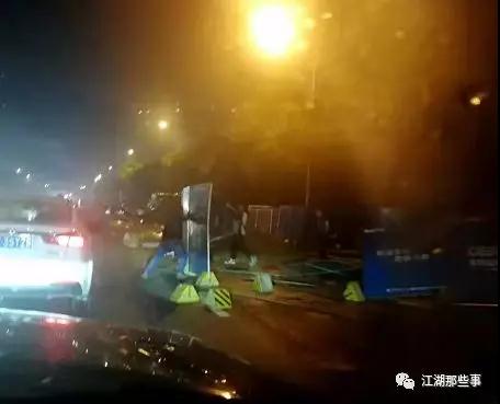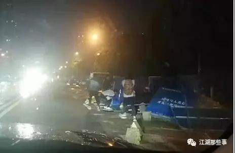 几名15中下晚自习的同学看见路中的挡板被风吹得摇摇晃晃,自发的把挡板收集在一起,并用铁墩压住。