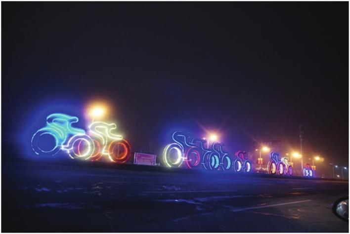 岳阳大道大型绿雕组合主题为“骑行者”,寓意在市委市政府“生态发展格局”引领下,“岳阳绿”成为大城市的鲜明底色,绿色出行成为人们新时尚。