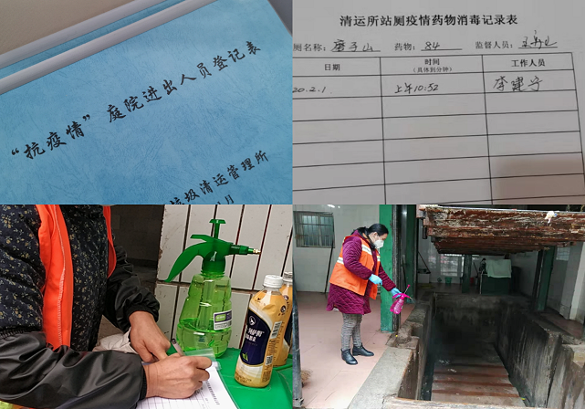 (环卫清运所制作庭院进出人员登记表和药物消毒记录表)