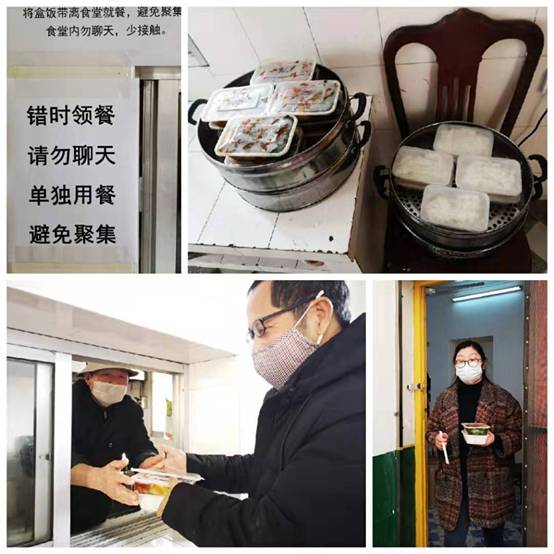 中午十二点,往日热闹喧哗的食堂如今却静悄悄的,只是偶尔见人走进去,不一会儿就端着两个盒饭出来了。这正是现下环卫中心科研所垃圾中转站的一幕。大型垃圾中转站远离城区,地处偏僻,职工回家用餐比较困难,为保障城市生活垃圾的正常中转,同时有效防控新冠疫情,单位因时制宜实施疫期食堂管理制度。在对厨房餐厅、厨具餐具开展全面消毒的基础上,每天监督厨员做好自我防护和个人消毒。开餐后从小窗口发放盒饭,要求职工餐厅内勿聊天,领取盒饭后迅速离开,分散用餐。同时延长开餐时间,不同部门人员错时轮流领餐,避免聚集。为解决开餐时间长导致的饭菜易凉现象,使用大型多层蒸锅对食物进行保温,让职工在清冷的食堂里能领到热气腾腾的饭菜,就像在严寒疫情中感受到祖国团结的暖流一般。(谢晶)
