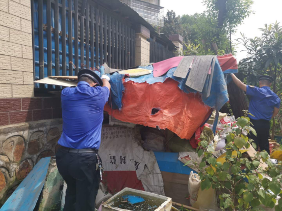集中整治行动中,执法队员在室外温度逼近摄氏40度的环境下,顶着炎炎烈日,一边用清理搬运杂物,一边对周边居民进行环境整治宣传,提醒大家自觉维护、珍惜美好环境。此次行动共清理清运各类垃圾3车,使洞氮生活区道路沿线的环境得到明显改善,受到居民极大好评。