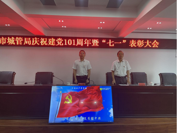 7月1日上午,市城管局召开庆祝建党101周年暨“七一”表彰大会,重温党的光辉历史,表彰先进集体和优秀个人,激励局系统各级党组织和广大党员履职尽责树担当、创新奋进争先锋,更加自觉地为新时代党的历史使命及全市城市管理和综合执法事业发展而努力奋斗。