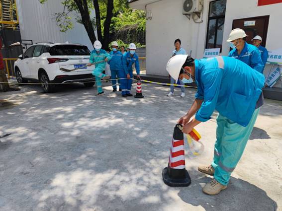 整个活动分会议培训和现场演练两个阶段进行。会上全体人员学习了危险废物事故防范措施、应急预案和相关法律法规,以及安全器材的作用和使用方法。现场演练主要模拟垃圾渗滤液处理化验室产生的危险废物在转移过程中发生意外泄漏的场景。面对突发情况,通讯联络组马上报告应急指挥部,随即启动应急预案;安全警戒组迅速疏散附近员工,在事故现场拉开警戒线,阻止其他人员进入警戒区;抢险组员立即利用水泥堵截泄漏的危废品,清洗事发区域,并将使用过的水泥和清洗用水收集起来作为危废品妥善处理;医疗救护组在拨打急救电话的同时,对受伤人员实施救援。