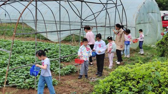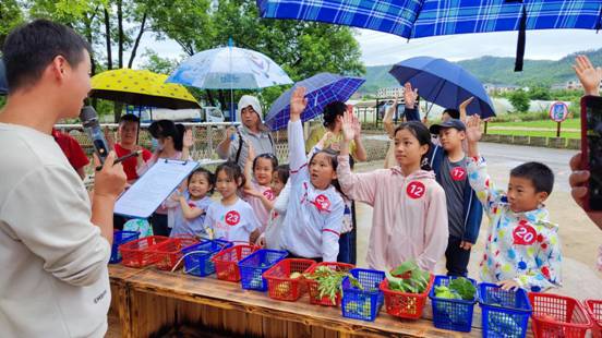 淅淅沥沥的小雨抵挡不了大家探索自然的热情。活动伊始,孩子们在蔬菜园里寻宝,他们亲手采摘黄瓜、茄子、豆角、紫苏等蔬菜,观察植物的生长状态,聆听基地创办者的讲解,对大自然产生了浓厚兴趣。