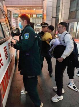 在城市的喧嚣与忙碌中,总有一些身影,用他们的行动传递着温暖与力量。1月24日6:40许,岳阳东站出站口一名小孩身体不适,猝然倒地,周围驻足了大量围观人群。正在附近巡逻执勤的市城管执法支队站场执法大队队员听到动静后,迅速赶过来,没有丝毫犹豫,立即上前查看小孩情况,并用对讲机召集当班同事,有的队员负责疏散围观旅客,保持空气流畅;有的队员配合其亲属拨打120 急救电话,准确地报告事发地点和病人的状况;有的队员守护在病人和亲属身边,安抚他们的情绪。