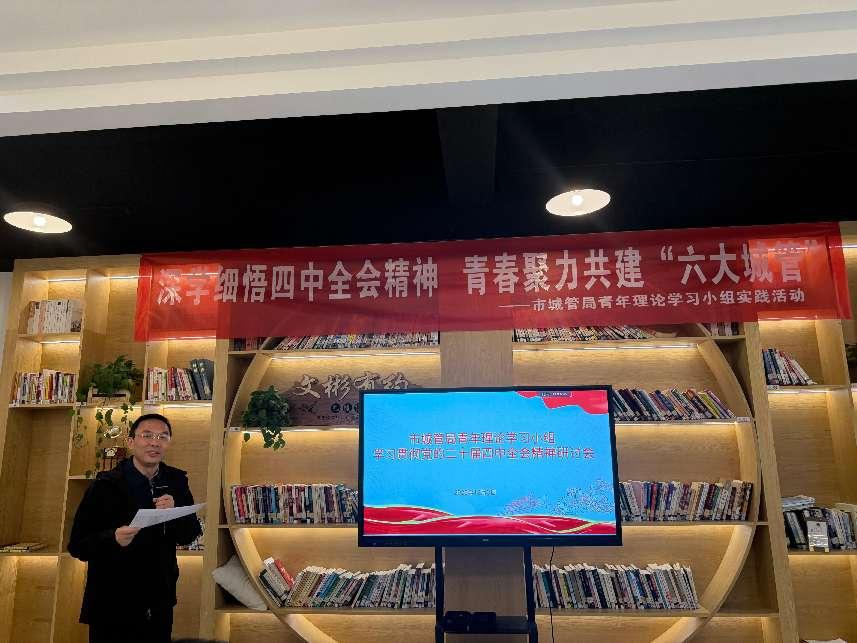 为深入学习贯彻党的二十届四中全会精神以及市委八届九次全会精神,引导局系统广大青年将全会精神转化为推动城市管理高质量发展的强大动力,12月3日,市城管局青年理论学习小组召开专题学习研讨会。市城管局党组书记、局长杜宇,局党组成员、副局长、机关党委书记姚恒毅出席,局青年理论学习小组全体成员参加。