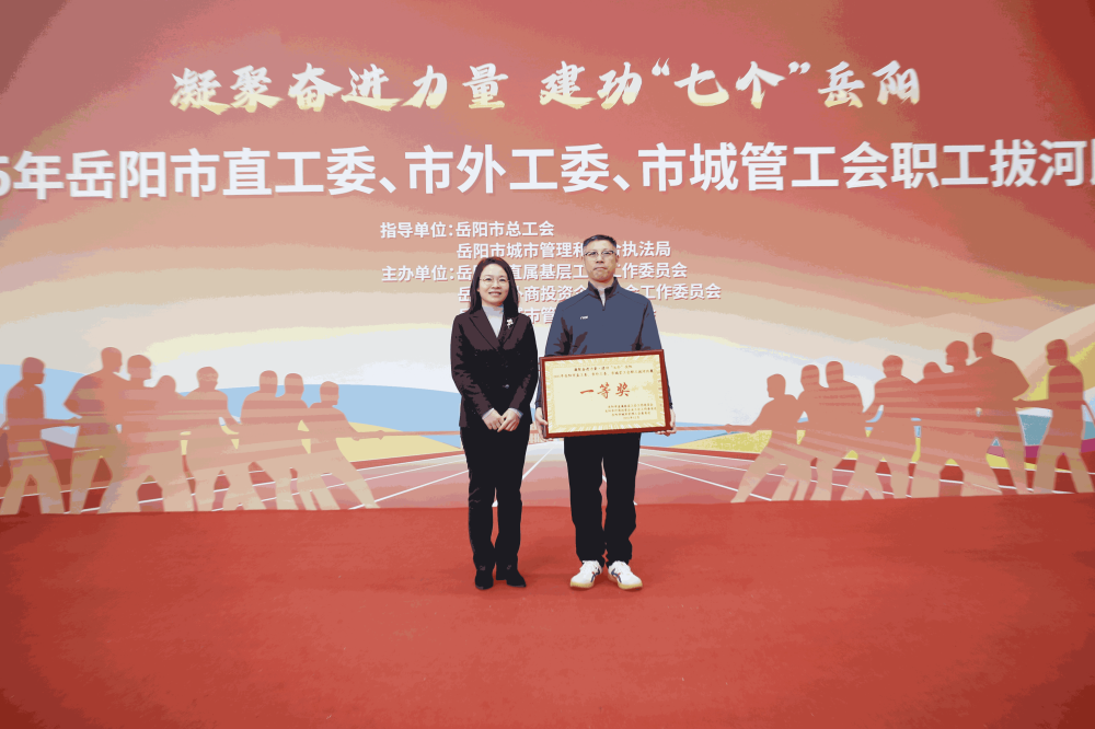 12月5日上午,2025年岳阳市直工委、市外工委、市城管工会职工拔河比赛圆满落幕。市城管执法支队工会联合委员会代表队凭借过硬实力、默契协作与顽强斗志,一路过关斩将成功夺冠,彰显了城管队伍的奋进风采。
