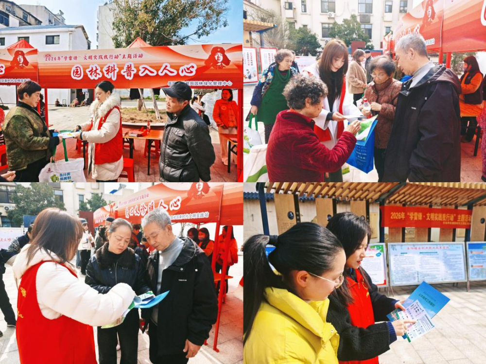 3月4日下午,市园林绿化管理中心联合岳阳楼区吕仙亭街道新时代文明实践所,在先锋路红色小广场举办2026年“学雷锋·文明实践我行动”主题活动。活动以“园林科普进社区,志愿服务暖人心”为主题,将园林知识与志愿服务送到居民身边,营造弘扬雷锋精神、爱绿护绿植绿的良好氛围。