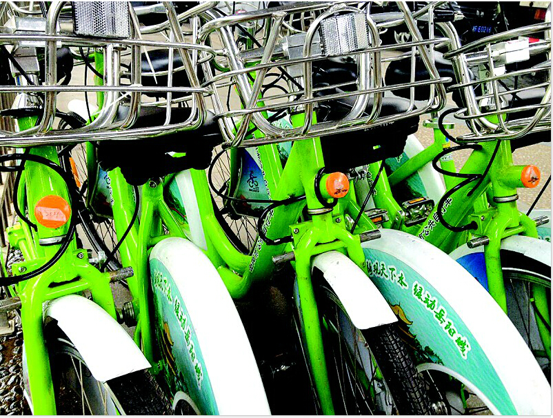 两个月前,5000辆公共自行车投放在城区200多个路边网点上供广大市民方便使用,为岳阳这座可以深呼吸的城市平添了一道 “低碳环保、绿色出行”的美丽风景。从此,岳阳城里,随处可见眉飞色舞的男女市民们,骑着那些崭新的嫩绿色轻便自行车穿行于大街小巷的潇洒身影。