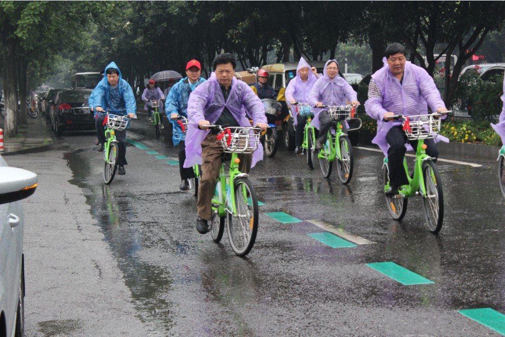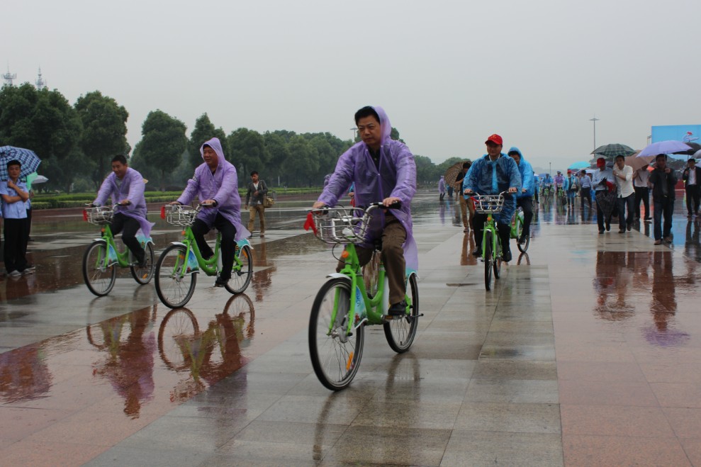 启动仪式结束后,盛荣华等市领导与市民代表骑上自行车从南湖广场出发,沿南湖大道骑行,一同倡导低碳绿色出行。