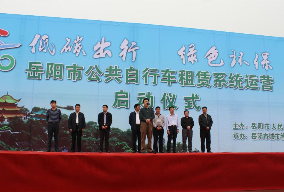 昨天上午,“低碳出行,绿色环保”岳阳市公共自行车租赁系统运营启动仪式在南湖广场举行。市长盛荣华宣布系统运营正式启动,陈四海、包忠清、向伟雄、欧江平、张益民等市级领导,市政府秘书长谈正红和市民代表参加启动仪式。