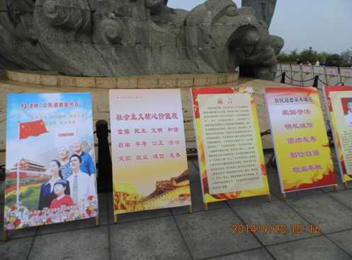 今年9月20日是中共中央颁发《公民道德建设实施纲要》12周年纪念日,同时也是全国第12个“公民道德宣传日”。为进一步宣传实践“爱国守法、明礼诚信、团结友善、勤俭自强、敬业奉献”20字基本道德规范,市城管局积极关心、支持和参与道德建设,组织园林局、沿湖风光带管理中心、路灯处等单位参观了在巴陵广场、南湖广场举行的我市“道德模范事迹巡展”,使学习道德模范成为局系统干部群众的自觉行动,并结合实际有针对性地开展活动,如正精心策划第七届“道德讲堂”及“为志愿者圆梦”慰问帮扶等一系列相关活动。(撰稿人:向萍 董凯)