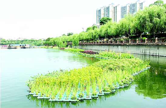 生态浮岛是一种生物和微生物生存繁衍的载体。针对富营养化的水质,利用生态工学原理,降解水中的COD、氮、磷的含量的人工浮岛。它能使水体透明度大幅度提高,同时水质指标也得到有效的改善,特别是对藻类有很好的抑制效果。据市风景园林局工作人员介绍,在千亩湖面积约1000平方米的“生态浮岛”上,栽植了再力花、水生美人蕉、风车草、黄菖蒲和泽泻等植物,不仅美化了水域环境,还改善了湖水水质。经常在千亩湖散步的李女士说,“本来千亩湖风光就好,现在湖面上多了这些花更好看了,散步的时候拍个照发朋友圈,外地的朋友都说好漂亮。”