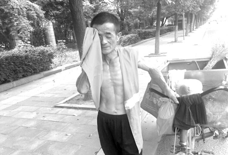 记者看到,除了工作必备的撮箕、扫把和火钳,许师傅的车上还有一个大大的矿泉水瓶,身上还挂着一条打湿了的毛巾,实在晒得受不了,就躲在树荫处坐着喝一大口水;汗水流进了眼睛里,用湿毛巾擦一擦……闷热的室外,个子不高的许师傅拖着一辆垃圾车奋力前行,双臂黝黑,汗水已经浸湿了整件衣服,还要不时弯下腰去捡地上的垃圾。“高温补贴经费到月底就能发下来。目前防暑药品已经发放到位,我们也给他们配了清凉油、风油精、手巾之类的物品。”岳阳市环卫局环卫南所学院路队负责人呼吁,城市卫生环境主要还是靠大家,希望市民不要乱扔垃圾,尤其是扔在路上,环卫工人去捡不安全,很危险。