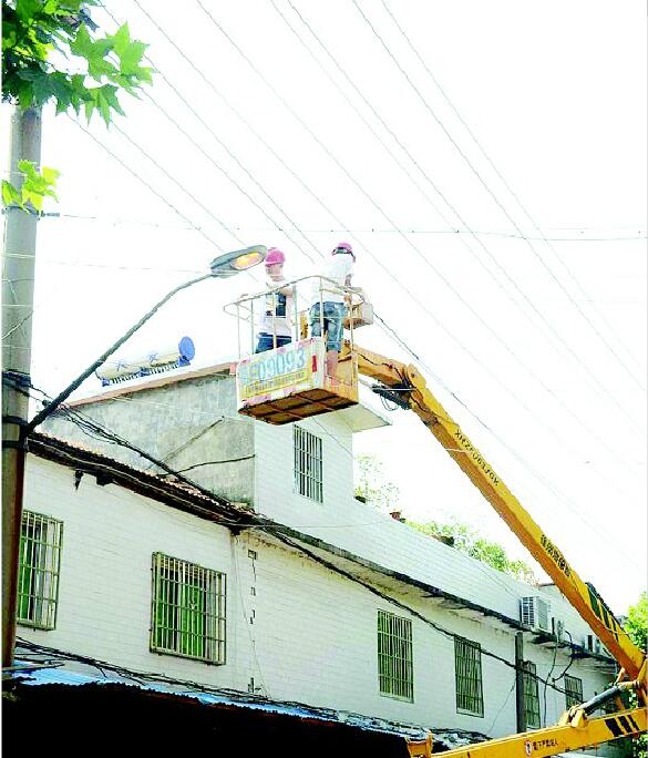 据了解,为给全市市民营造一个安全、舒适、优美的照明环境,市城管局路灯管理处从8月6日起便加班加点,马不停蹄地奔走在城区各条道路上检修路灯。共派出3个维修班每天对全市照明设施进行集中巡查,边查边改,巡查维修同步落实,确保中心城区路灯亮灯率和设施完好率均达到99%以上。“我市环南湖夜景亮化和中心城区亮化建设时间早,覆盖面广,设施老化程度正日益加大,维修难度也在逐步加大,所以需要花更多的时间和精力。”维护一队副队长毛固强告诉记者,除了狠抓路灯检修,该处还加强了亮化维护管理工作,做到重点亮化设施每日巡查,及时维修处理夜景亮化设施破损和亮化灯具不完整现象,以及未按时启闭等问题。
