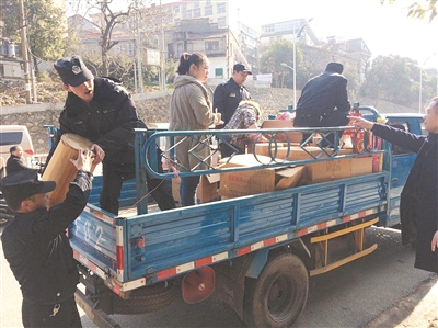 收缴非法经营的烟花爆竹 通讯员 徐 畅 摄