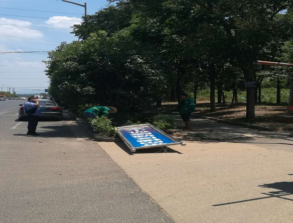 8月7日,由市园林局管理科牵头组织,城市绿化管理中心具体承办,城管公安大队支持,对城陵矶海关路路段擅自占用城市公共绿地的行为进行了集中整治,行动中拆除了未经审批擅自占用城市绿化用地的广告牌和标识标牌共二十余块。
