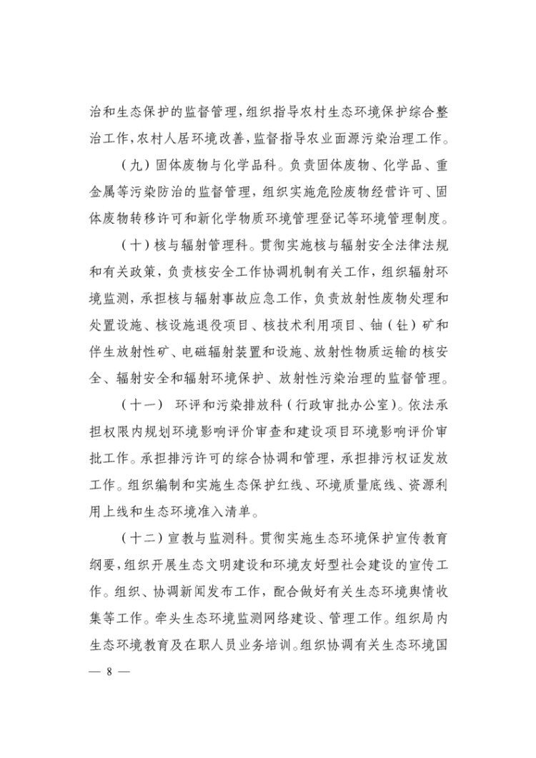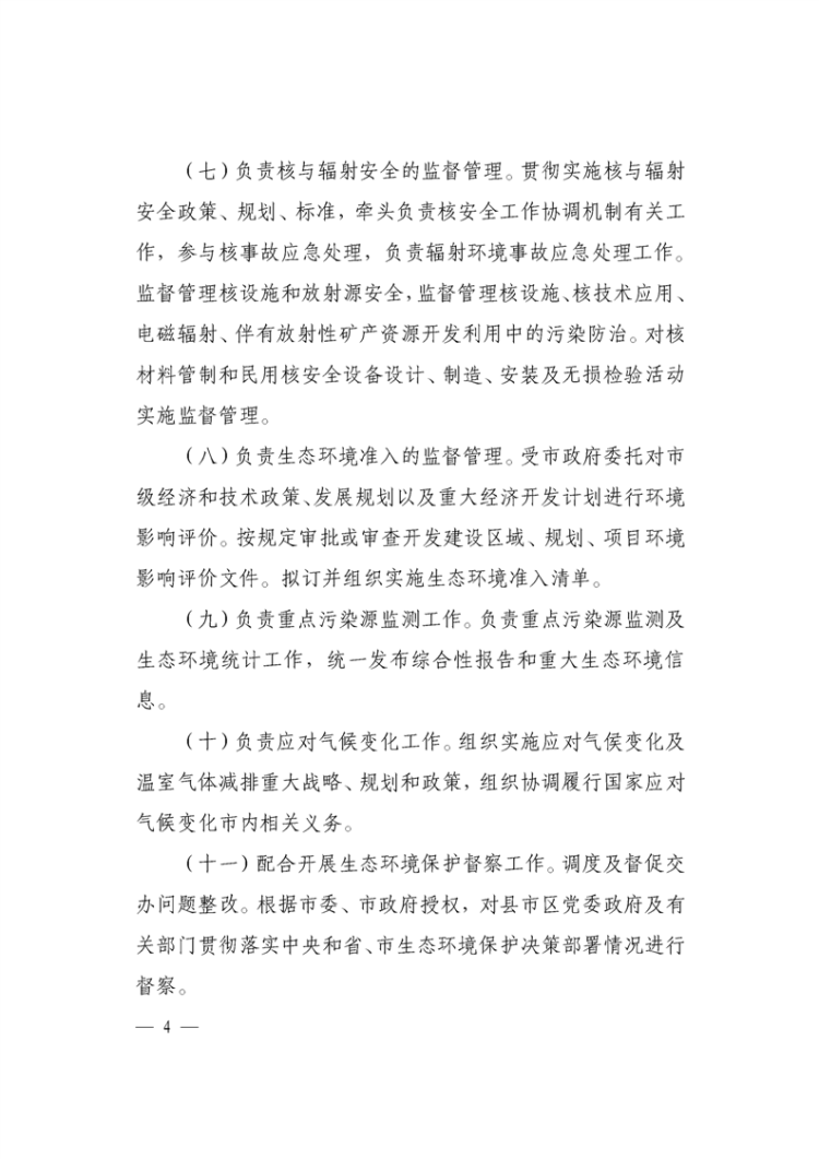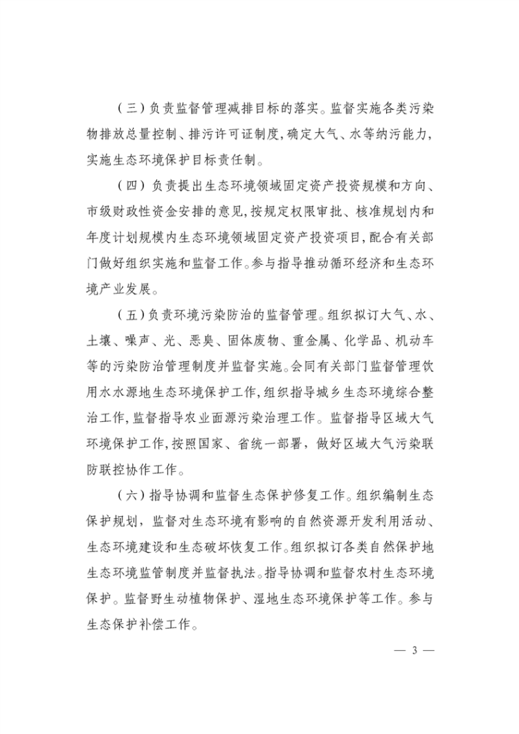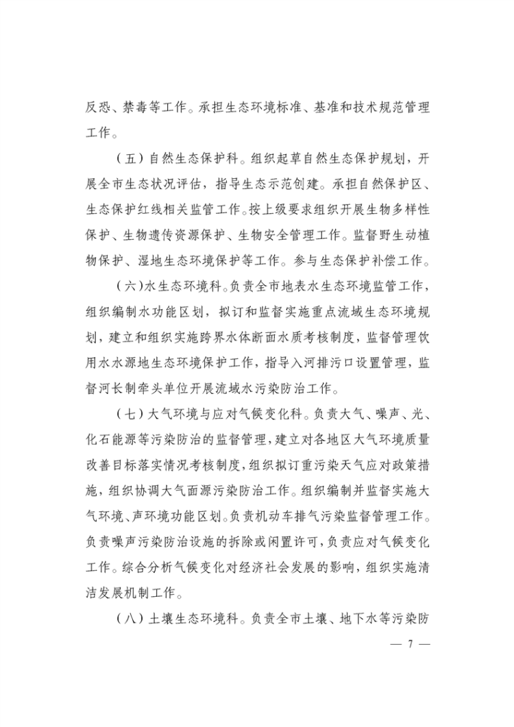 岳阳市生态环境局职能配置、内设机构和人员编制规定