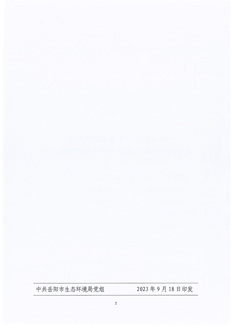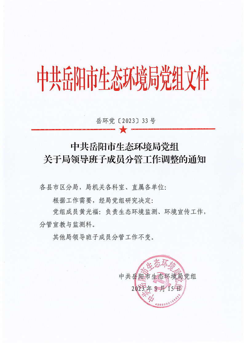 中共岳阳市生态环境局党组关于局领导班子成员分管工作调整的通知(岳环党〔2023〕33号)