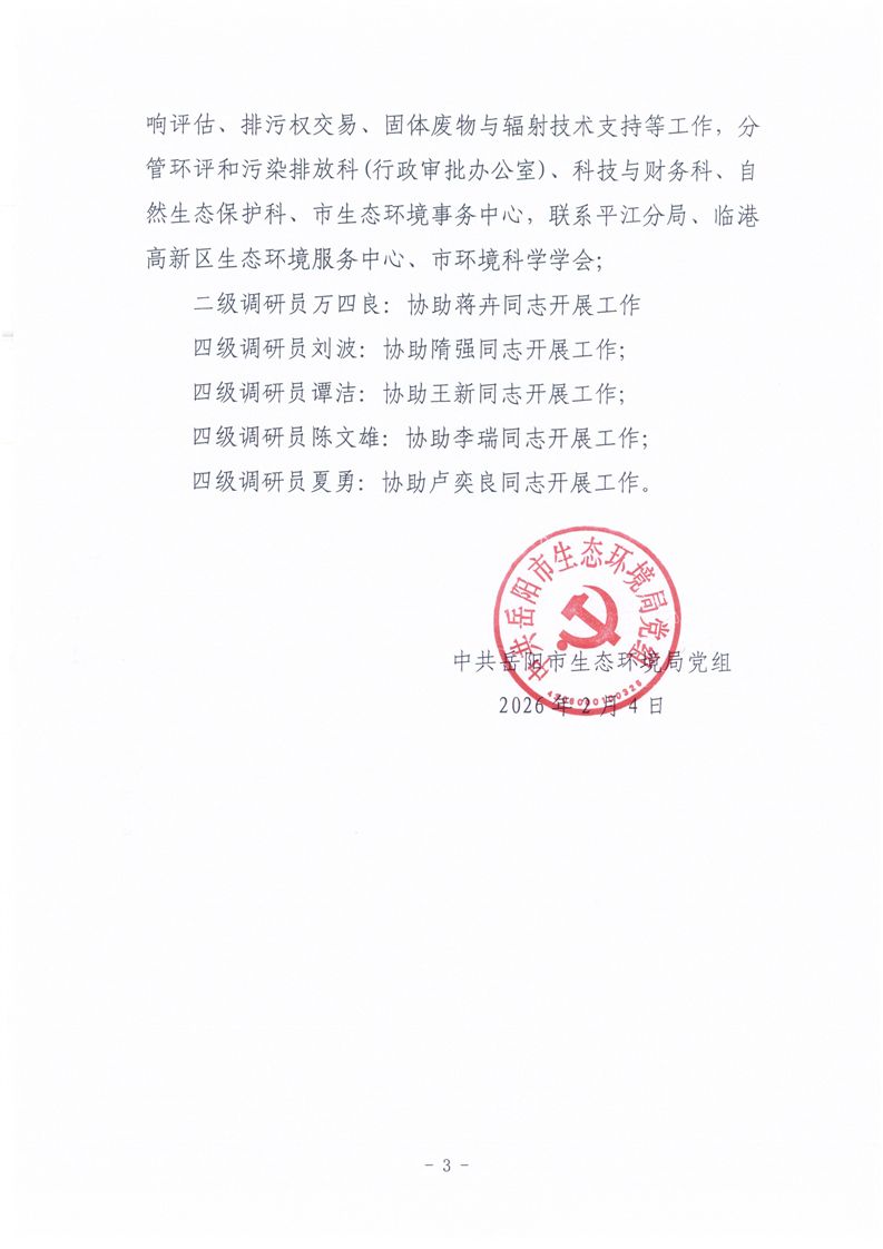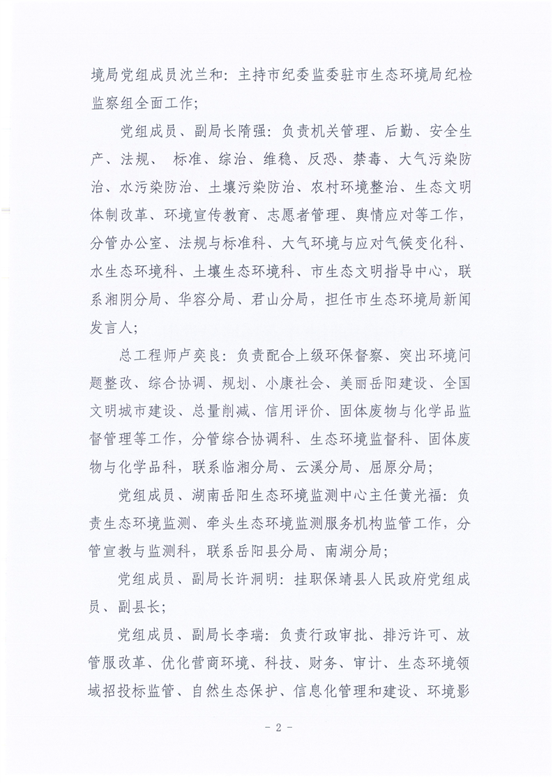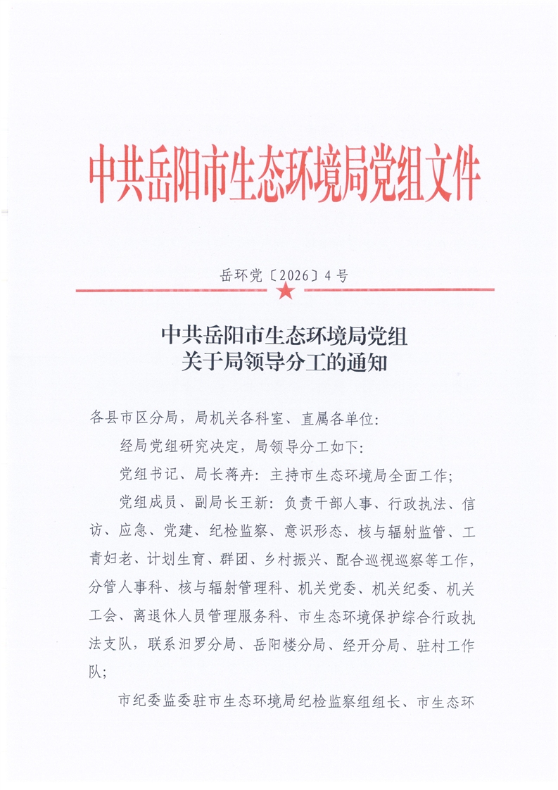 中共岳阳市生态环境局党组关于局领导分工的通知(岳环党〔2026〕4号)