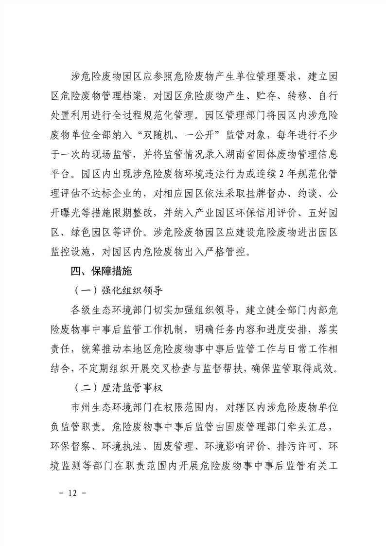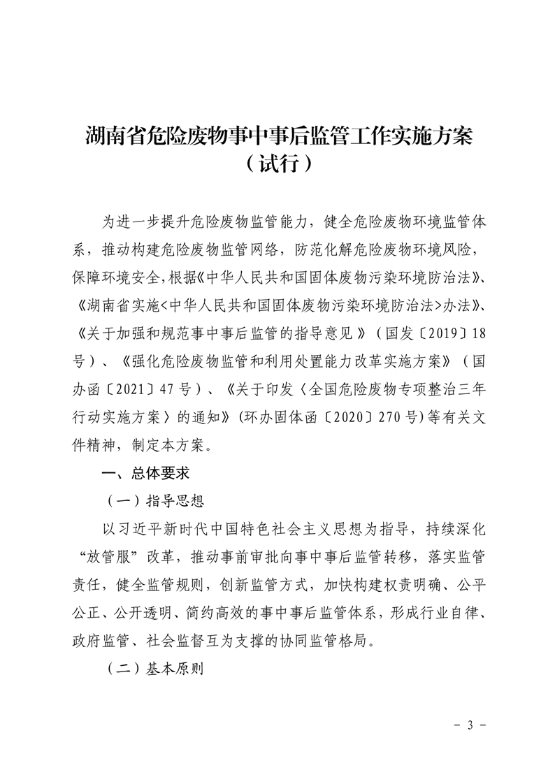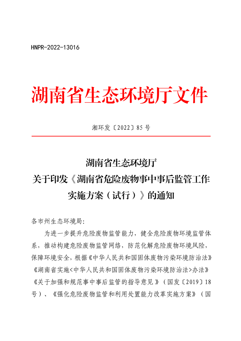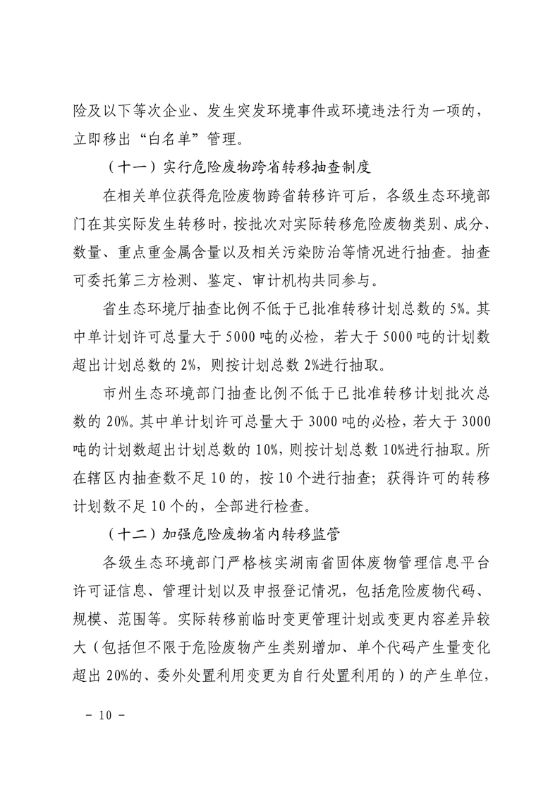 湖南省危险废物事中事后监管工作实施方案(试行)