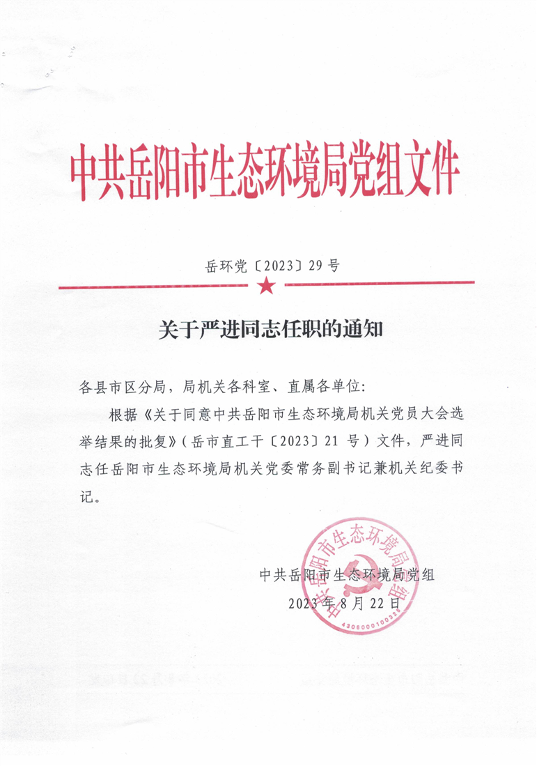关于严进同志任职的通知