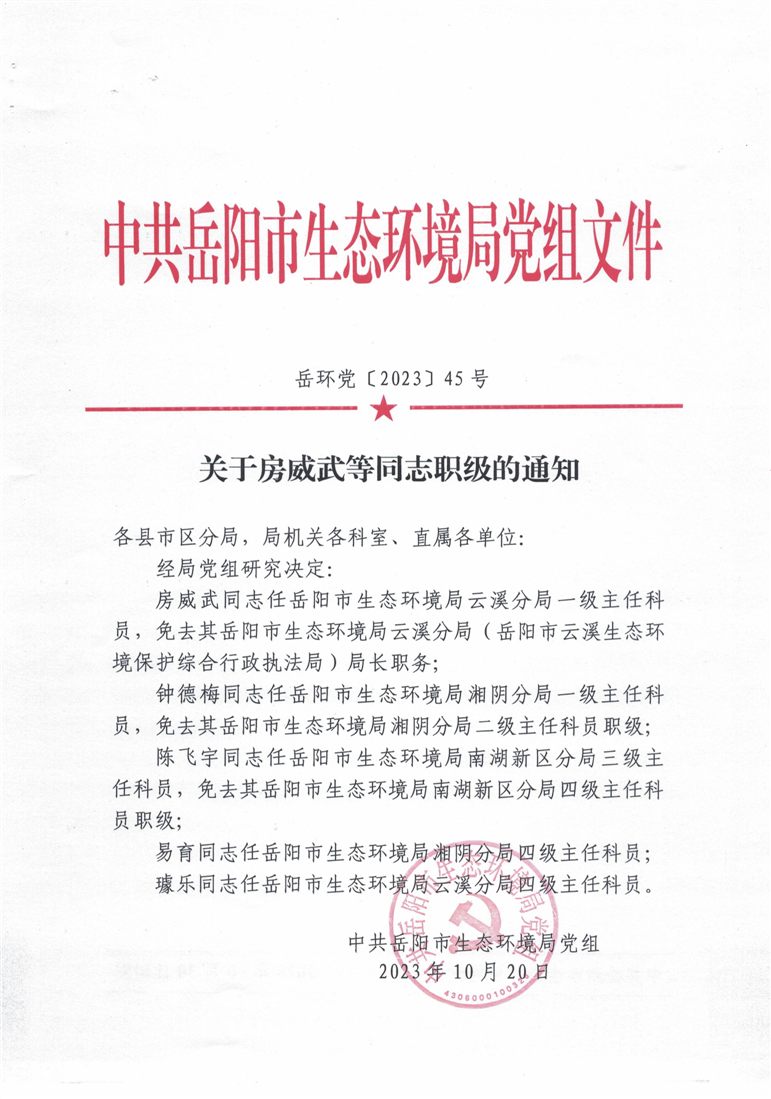 关于房威武等同志职级的通知