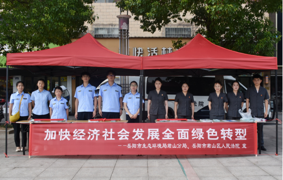 2024年8月15日是第二个全国生态日,主题是“加快经济社会发展全面绿色转型”。为增强人民群众的生态文明意识,岳阳市生态环境局君山分局、君山区人民法院、君山区文明办等单位于8月15日上午,在荷杏广场联合开展生态日主题宣传活动。