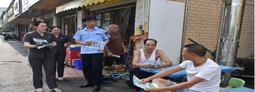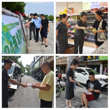 活动现场,大家悬挂起横幅、设置宣传展板,向过往群众和周边商户发放宣传手册,宣讲关于生态日设立的意义、普及环境保护相关知识。