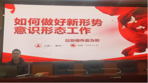 研讨交流会上,涂禹临同志以坚持马克思主义在意识形态领域的指导地位为题,从文明哲思起源的角度深入浅出的阐述剖析了为什么只有坚持马克思主义在我国意识形态领域的指导地位才能做好新形势下的意识形态工作,并就各位党员干部如何坚持马克思主义意识形态理论给出了实用的意见建议。鲁泽人同志站在党和国家的立场,用马克思主义意识形态理论分析、研讨了《阿甘正传》等电影中意识形态入侵,并就党员干部要如何正确的欣赏影视作品、以及如何运用好新媒体讲好环保故事进行了内容分享。