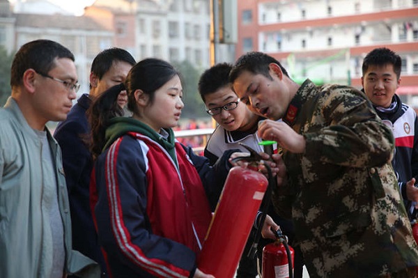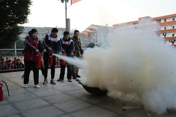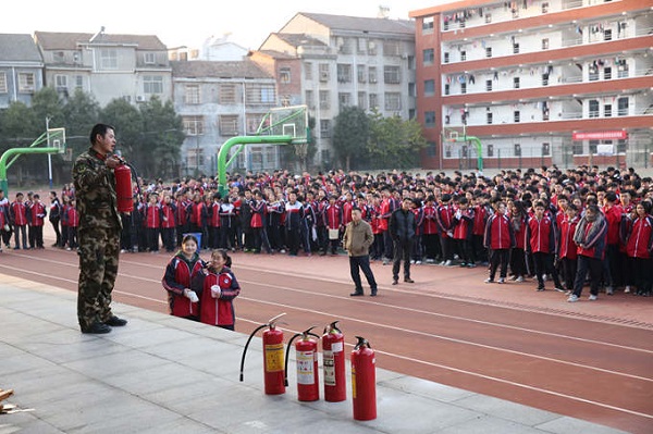 现场,消防宣传员还用通俗易懂的语言为1300余名师生们讲解了消防安全常识以及扑救初期火灾的基本常识、学校内如何预防火灾、遇到紧急情况时应该如何处理、逃生等与学生们日常学习生活密切相关的消防知识,同时还向师生们认真讲解了灭火器的正确使用方法。在宣传员的指导下,广大师生还体验了手提式干粉灭火器扑灭“油盆火灾”的处置过程。演练现场,全体师生积极联动,配合默契,组织有条不紊。