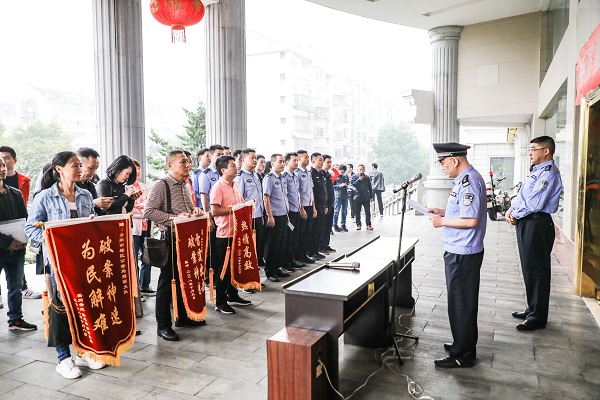 10月12日,岳阳楼分局召开退赃大会。岳阳楼区人民政府副区长、分局局长余昕出席会议。来自岳阳楼区的市民、失主、民警及新闻媒体记者等约100人参加会议。退赃大会由该局副局长杜卫东主持。