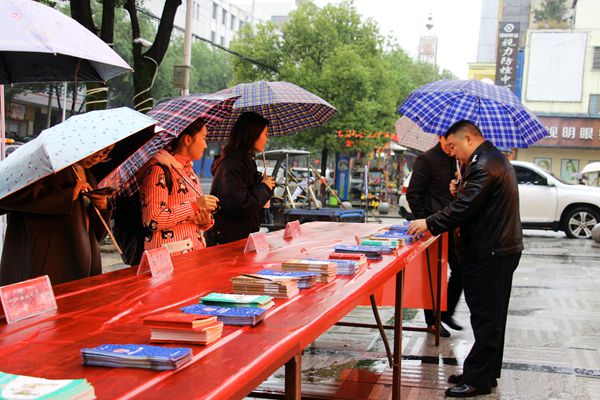 随后,邓可杰同志又马不停蹄的赶往其联点的临湘市桃林镇,参加临湘市局与桃林镇政府联合举办的“宪法日”宣传活动。邓可杰同志认真查看了宣传资料,对冒雨在此举办宣传活动的临湘市局指挥中心、政工、法制、刑侦、禁毒、桃林所民(协)警及桃林镇司法所、社区干群进行了慰问,并对现场群众进行了普法宣传。
