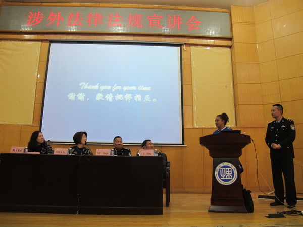 此次涉外法律法规进学院宣讲活动,不仅增强了在岳外国人自觉遵守我国法律法规的意识,为留学生动态管理打下了坚实的基础,也为携手共同加强外国人管理营造了的良好工作氛围。