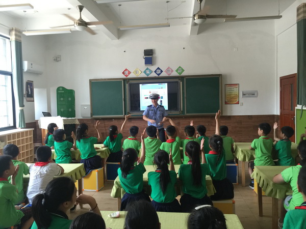 5月27日,交警支队城陵矶大队教导员谭庆辉带领宣教民警来到辖区华夏双语学校,为学生们普及交通安全知识,引导学生正确认识常见的交通标志,教导学生认真遵守交通规则。课堂中,民警运用电教设备采取 ppt课件授课形式,以通俗易懂的语言、活泼生动的动画、图片,从安全乘坐校车、安全通过马路等多个方面向同学们讲解中小学生应注意的安全事项,让同学们深刻理解“交通安全四要四不要”、“五意识”,充分认识到“十类不注重安全细节”交通违法行为的危害性。在讲课的过程中,民警还通过交通安全知识提问的形式进行互动,让每一个同学都参与到交通安全知识的探讨活动中来。最后,宣教民警倡导同学们自觉遵守交通法律法规,充分发挥“小手拉大手”作用,用行动来带动家长告别不文明的交通行为。