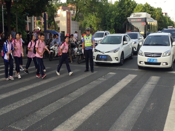 大队开展中小学护学行动。按照辖区道路交通实际状况,结合中小学上放学时间,合理安排勤务,调配警力,在每天早上7时10分、中午11时30分、下午14时和16时30分的上放学高峰时段开展护学行动。每天护学民警提前到岗,充分发挥职能作用,疏导、分流过往车辆,提示接送学生车辆有序停放、有序通行。同时提醒骑自行车的学生不要在路上追逐打闹,按交通信号灯安全通行。