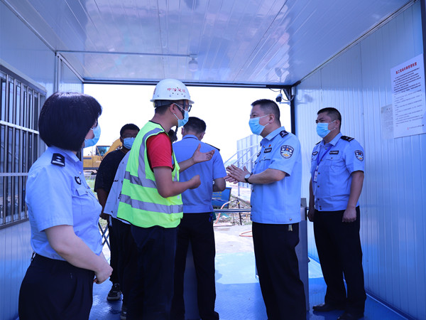 8月7日上午,经开区分局党委副书记、政委田忠,党委委员、政工室主任李琳娜及分局木里港派出所负责同志一行,深入经开区重点项目联东U谷·岳阳国际企业港工程督导项目建设情况和疫情防控工作。