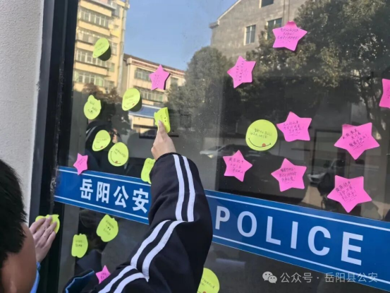 多年来,那一抹穿梭在人群中的警察蓝,成为了学生心中最安心的存在。宣传民警积极走进校园开展法治安全教育讲座,助力学校营造良好的育人环境。在老师的指导下,孩子们化身“小小祝福员”,拿起彩笔在便利贴上写下一句句温暖的话语。“警察叔叔,谢谢您守护我们上学的路!”“祝警察阿姨节日快乐,每次出警都平安归来!”“藏蓝铠甲,守护万家,你们辛苦啦!”一笔一划间,饱含着孩子们对人民警察的感恩与祝福。