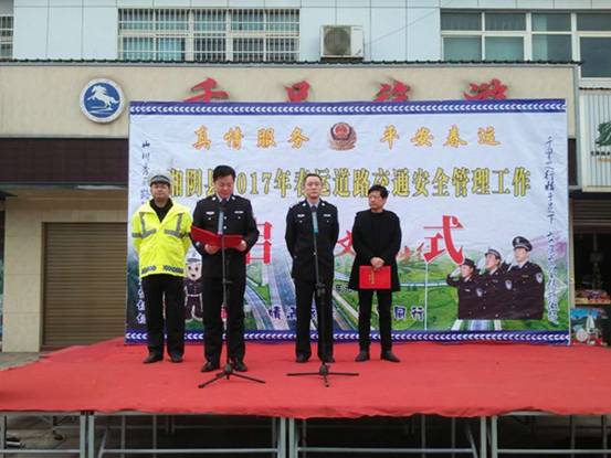 启动仪式上,余宏等为春运交警临时执勤服务点授牌并宣布春运正式启动。来自该县文星镇、公安局、安监局、物价局、交通运政、交警大队等单位工作人员,以及参与春运营运的客运企业驾驶人及上百名交通安全志愿者参加启动仪式。