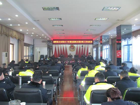 启动仪式结束后,湘阴县局组织17个派出所所长,刑侦、治安、巡警、特警、消防大队长及交警大队总支成员和交警部分代表召开了动员大会。 会议宣读了《2017年春运道路交通安全保卫工作方案》,特警大队、交警大队一中队负责人作了表态发言。余宏对春运工作进行动员,并提出了具体要求。他指出,今年春运工作从1月13日开始,为期40天,一是要认清形势,统一思想,切实增强做好春运道路交通安全工作责任感和紧迫感;二是要明确重点,齐抓共管,扎实推进春运道路交通安全管理工作措施落实;三是要精心组织,落实责任,确保春运工作取得实效。要做到坚持领导作表率、规范执法、热情服务、注意自身安全,确保春运工作取得实效。